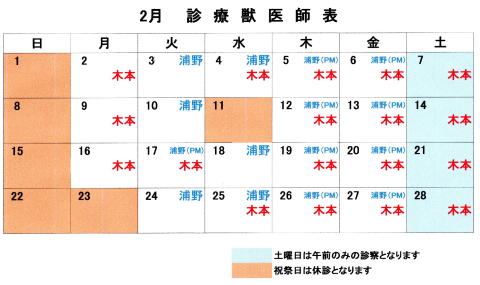 研究会などの都合により、急に獣医師の勤務日が変わることがあります。 |