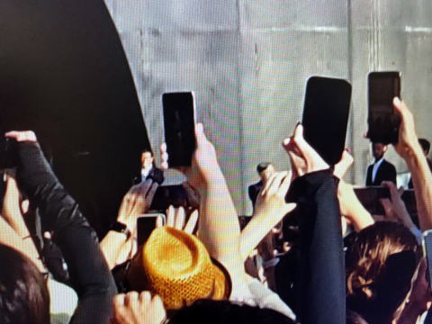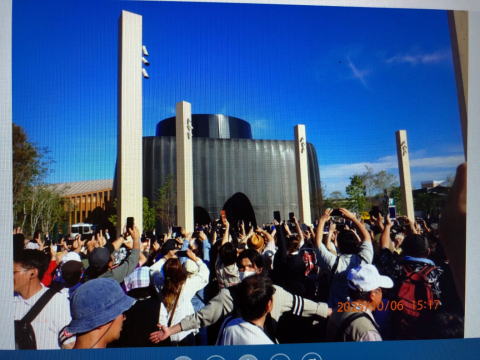 人がいっぱいの中、かなり待たされた後に、みんなが一斉にカメラを突き出したので、私もカメラを頭上に。一瞬青い服が見えましたが、お姿ははっきりわかりませんでした。