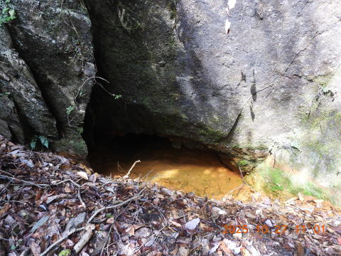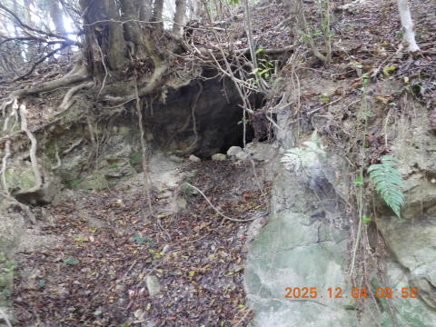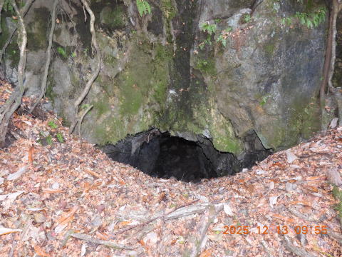 引き返してまた探索すると、斜面の上に、廃坑がありました。ですが、郷土史の写真のような廃坑ではなく、ネットの人が掲載していた、「穴らしき」ものしかありませんでした。