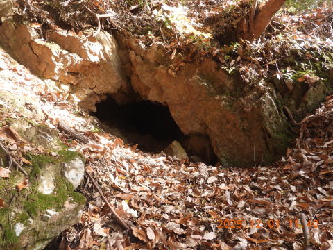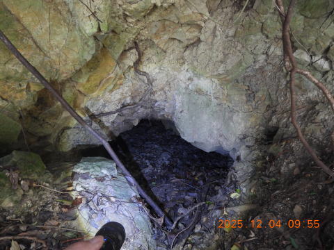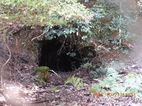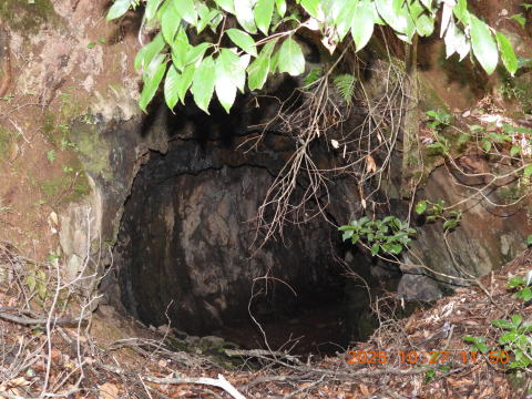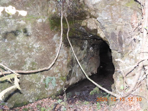 けっこうな斜面でしたがなんとか登ってみると、大きな坑口が見えました。これこそ、郷土史に載っていた坑道です。