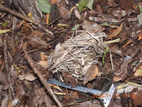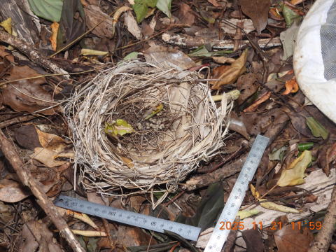 移動中に、鳥の巣をひらいました。ヒヨドリでしょうか。