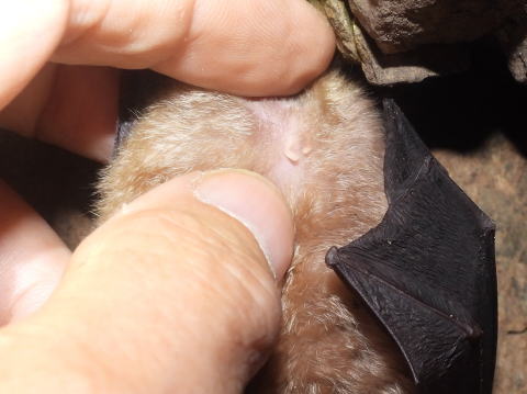 朝までトラップを設置したところ、モリアブラコウモリが4頭捕獲されていました。