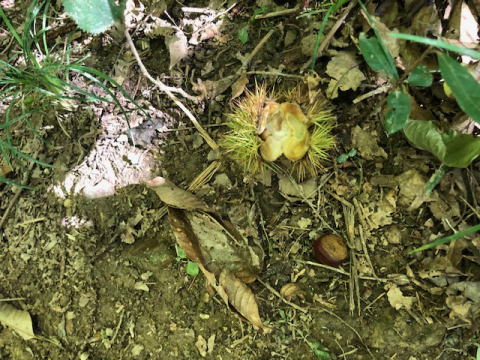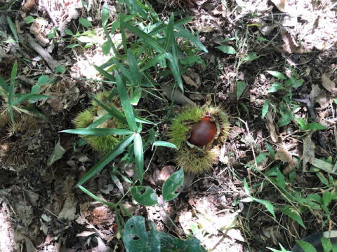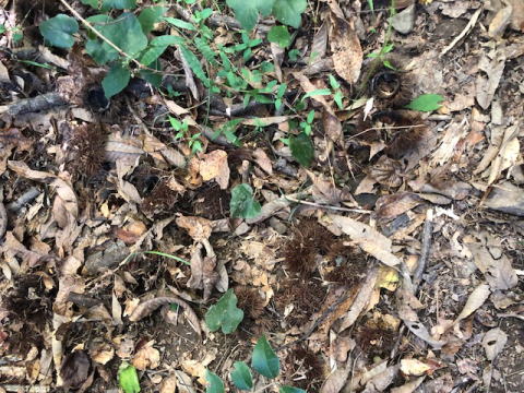 地面に多数の大きなイガがあったものの、栗は見つからず。イガの様子から見ると、かなり以前に落下していたみたいで、ここの木は時期がかなり早いのではないかと思いました。来年は時期を間違わないで来るようにしましょう。