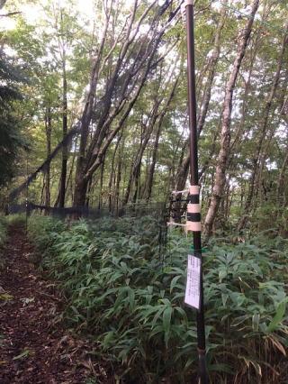トラップによる、コウモリの夜間調査を某山山頂で実施しました。