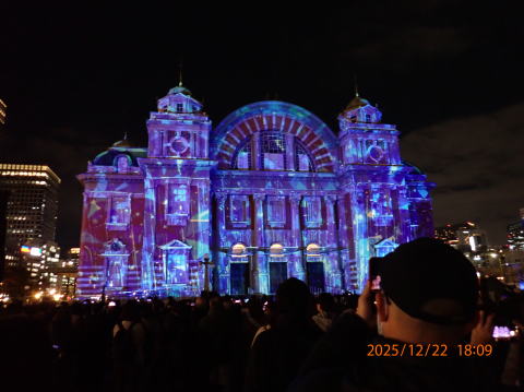 下で、ドイツマーケット、だっけ、クリスマスイベントが行われていました。