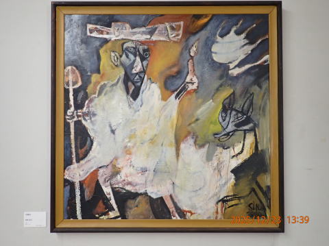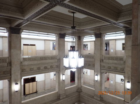 吹き抜けの周りの壁には、絵画がたくさん展示されています。