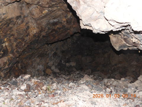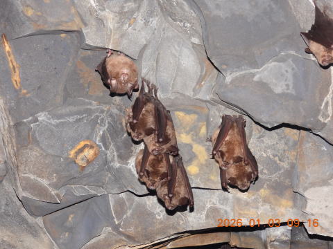 最初の生息地ではコウモリ不在。いつもはここで冬眠しているのになあ。