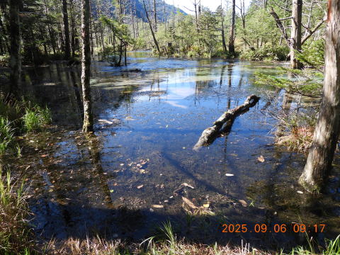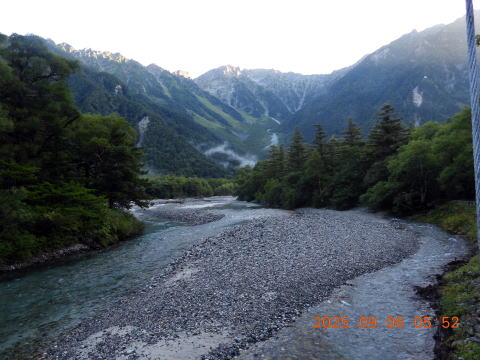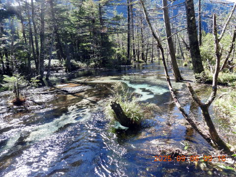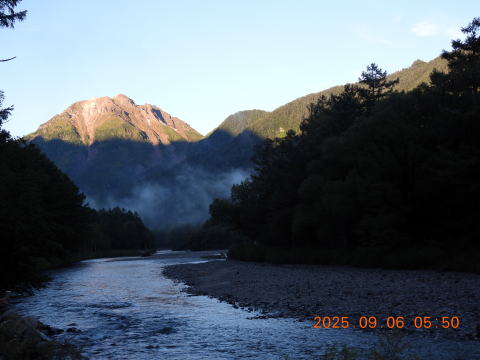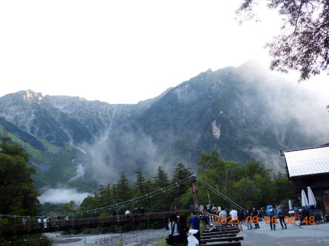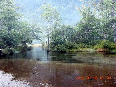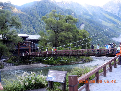 6時前には登山客が大勢、バス停に並びだしたので、私も並んでバスに乗りました。上高地に着いたのは7時前。とりあえず、近くを散歩しました。