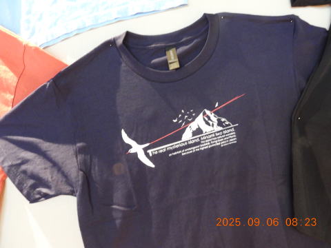 「南硫黄島」のTシャツだそうです。島の右上にオオコウモリが飛んでいます。