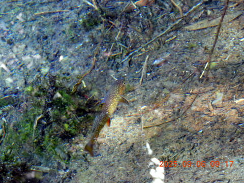 (左)おいしそうな魚がいっぱいいます。イワナ、かなあ。