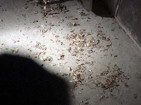 宿舎の倉庫はウサギコウモリのねぐらになっていて、蛾の羽がいっぱい落ちています。