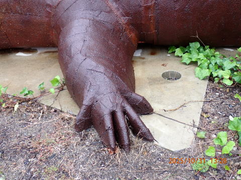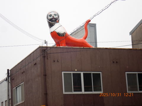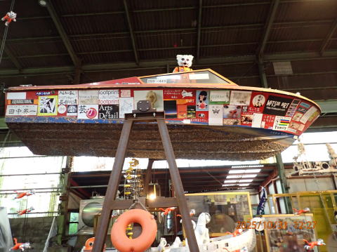 加賀屋は工場地帯で、もちろん現役の大きな工場がたくさんありますが、このように廃業したところも多く、「芸術の町」としての再生を図っているみたいです。工場脇の空き地あちこちで、すきまに「作品」が置かれていました。