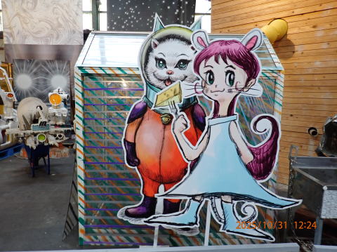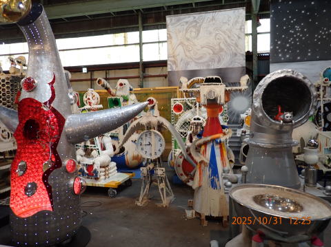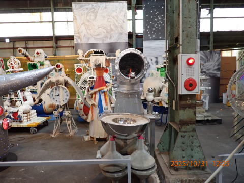 広い工場の中いっぱいに、いろいろな作品が出されており、見ごたえはありました。